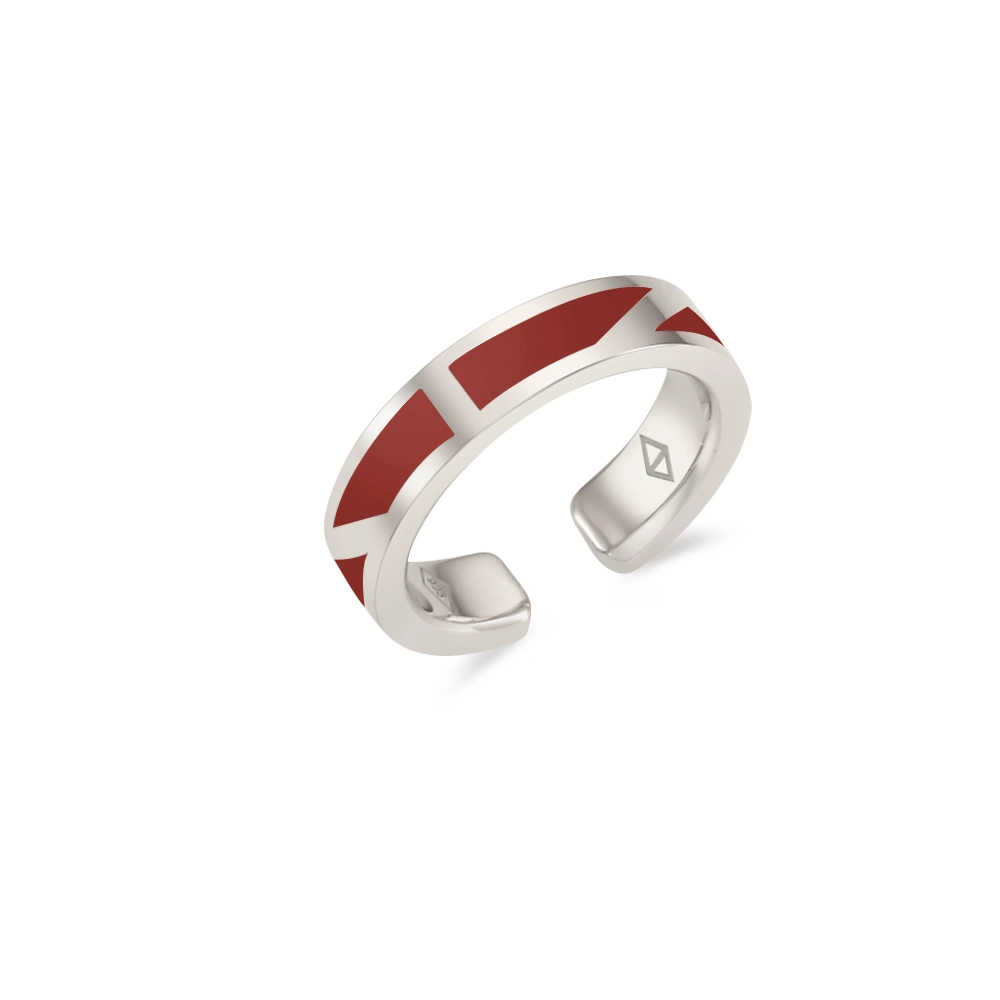 SILVER 925 COMBI 2 WAY FINGER RING EAR CUFF SLIM BURGUNDY