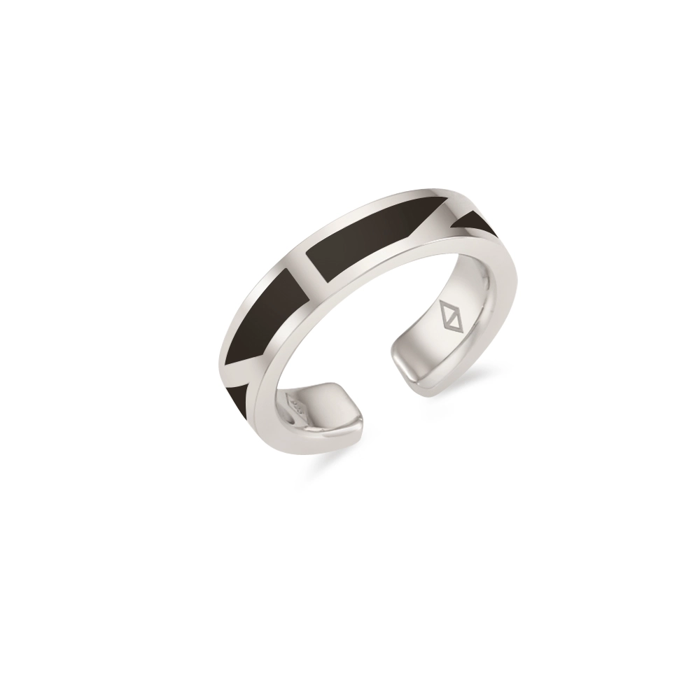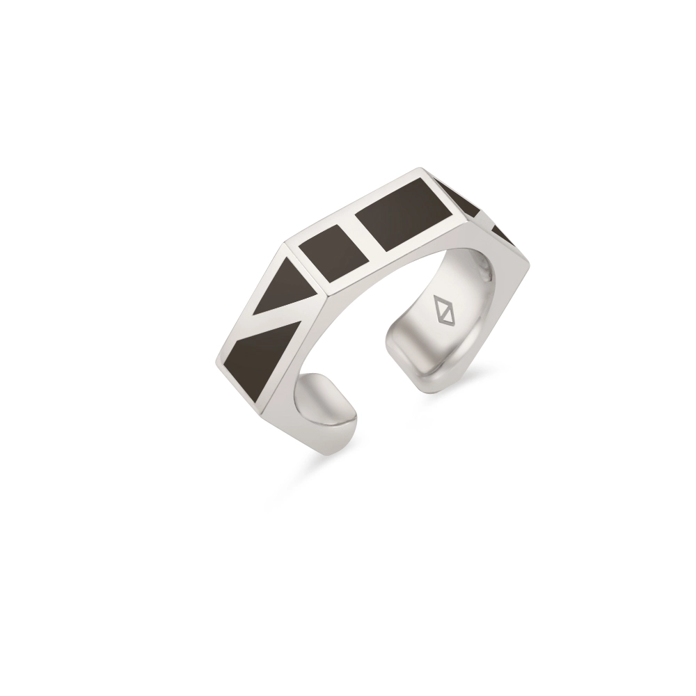 SILVER 925 COMBI 2 WAY ANGLED FINGER RING EAR CUFF SLIM BLACK
